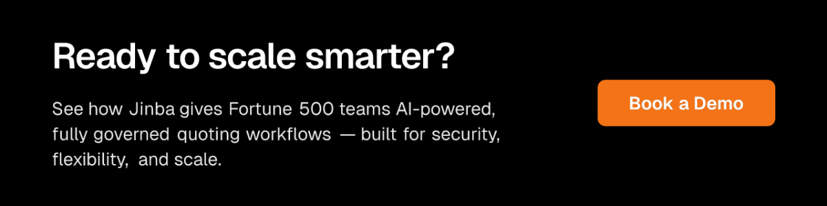 Stop forcing your enterprise into a rigid quoting template. Build the exact workflow your business needs, and govern exactly how it's used. That's the new standard for AI for enterprise sales quotes — and it's already the reality for Jinba's 40,000+ daily enterprise users.