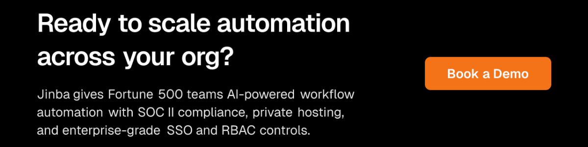 Jinba instantly drafts the multi-step workflow. Your operations team—not IT—can then refine it in the Visual Workflow Editor, test it with real sensor data, and deploy it as a production-ready API. For Fortune 500 environments, Jinba's SOC II compliance, SSO, and RBAC controls ensure enterprise security standards are met from day one. Over 40,000 enterprise users are already running workflows this way daily.