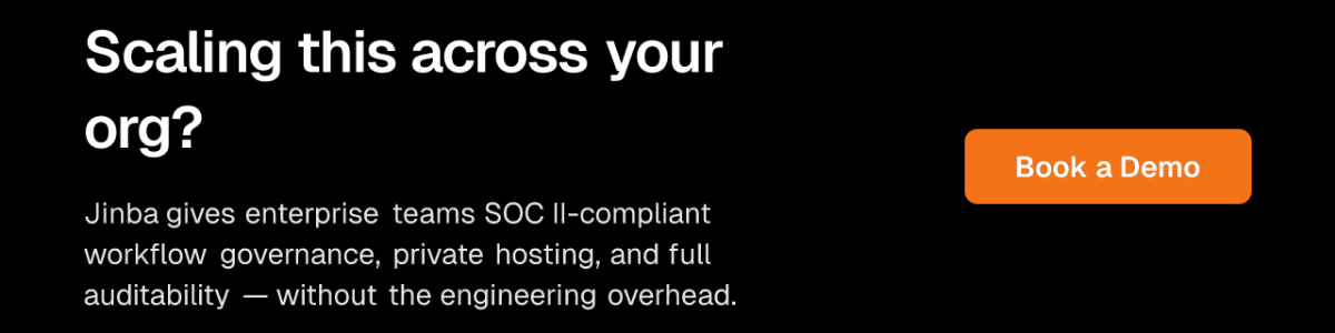 This separation — builders in Jinba Flow, users in Jinba App — is what makes enterprise-grade governance practical. Your RevOps or operations team controls the workflow. Your sales team gets a reliable, guardrailed tool they can use from day one.