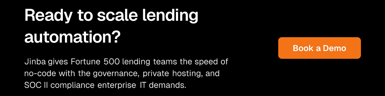 - If you're an enterprise lender who needs to stitch together document extraction, compliance checks, and underwriting logic into a single, auditable workflow — without overhauling your entire LOS — Jinba Flow gives you that flexibility with the security controls required in regulated environments.