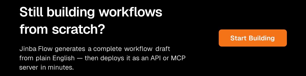 Jinba is the only platform on this list architected from the ground up to solve both sides of that problem simultaneously. Jinba Flow gives your builders AI-native creation, visual editing, and enterprise-grade deployment as APIs and MCP servers — all with SOC II compliance, SSO, RBAC, and private hosting. Jinba App turns those workflows into a governed, intuitive execution layer that any business user can operate safely via chat or auto-generated forms.
