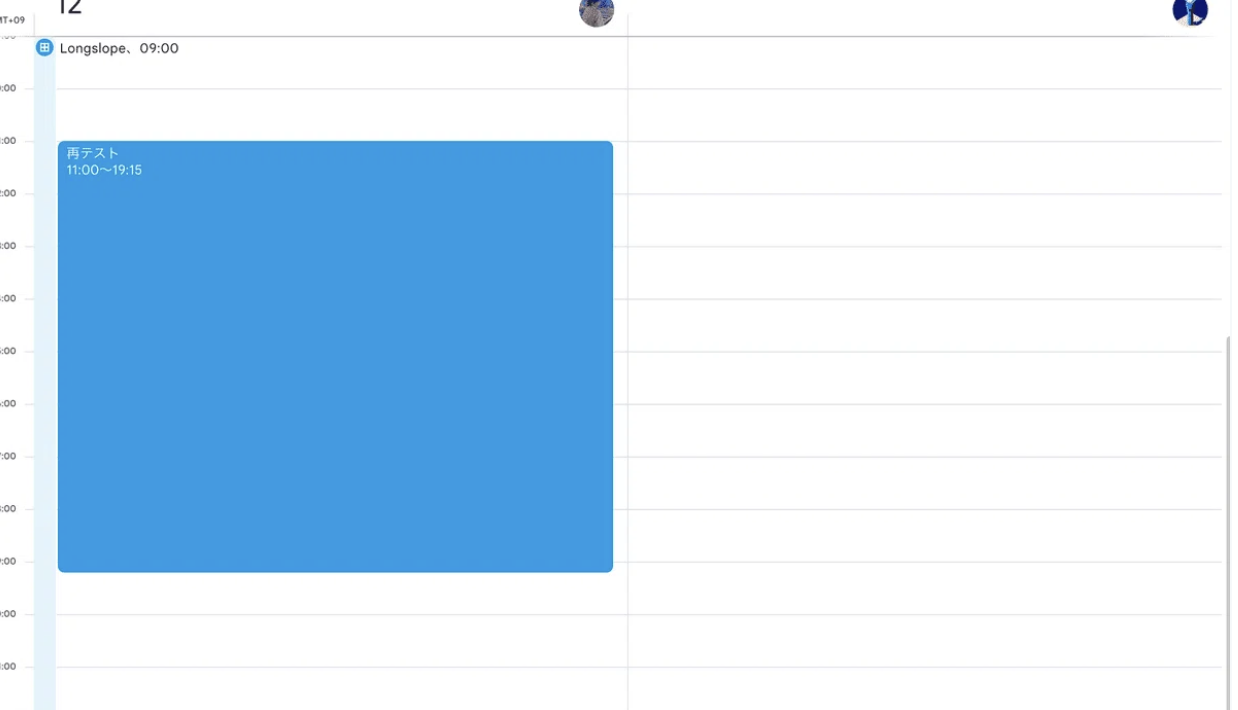 - カレンダーAでテスト用の予定を1件作成