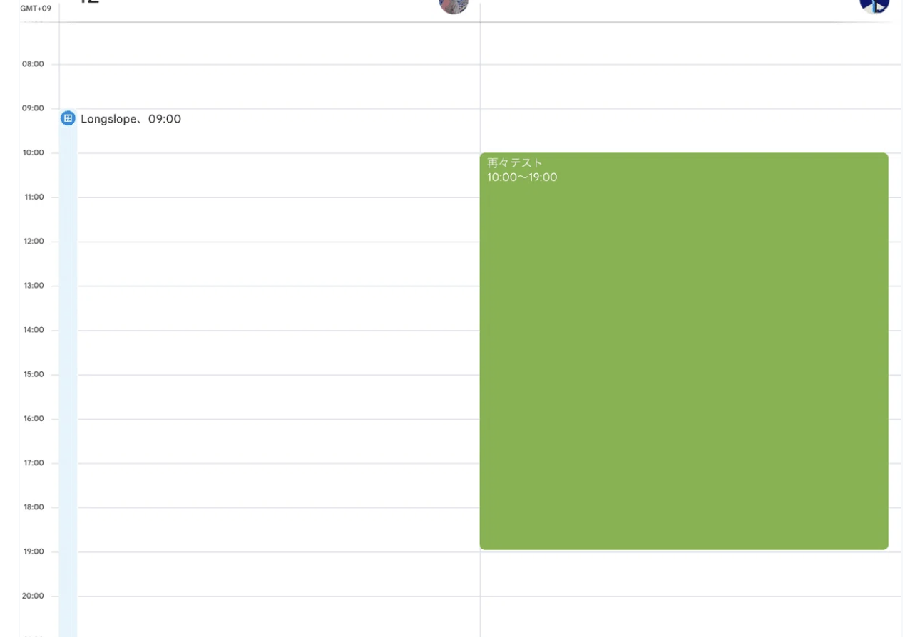 - カレンダー A(個人用)に再度テスト用イベントを登録