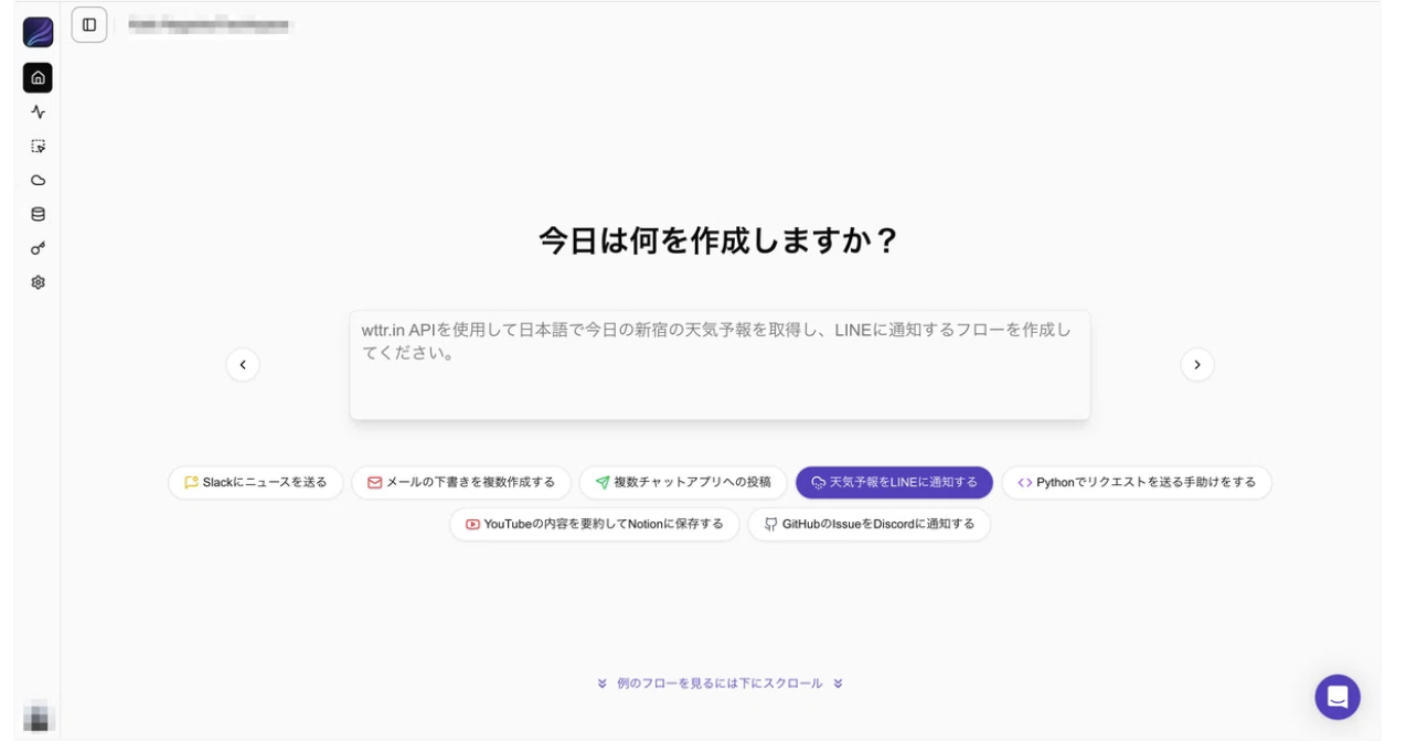 まず初めにunknown nodeにアクセスします、まだ登録してない方は登録しましょう。unknown node最初の画面でテキストボックスにunknown nodeunknown node「カレンダーの情報から、空き時間をLLMで考え、ミーティングの候補時間をメール文ぽく出力するワークフローを作る。inputはtext文で「今週の月曜から金曜で1時間のスロットを9時から18時の間で探せ」のようなものを受け取る。inputの指示に従って、googleカレンダーから必要な情報を取得し、その情報を元にLLMで空き時間をメール文として使える形で出力」unknown nodeunknown nodeと打ってエンターを押します。