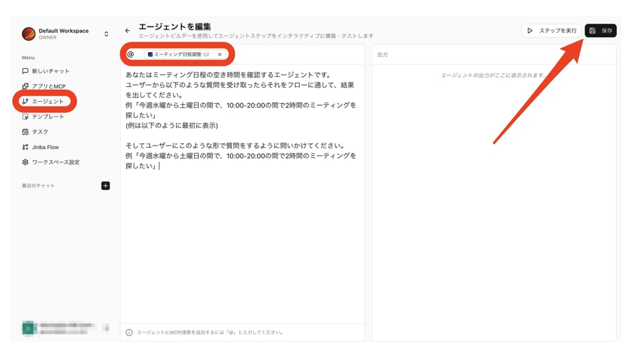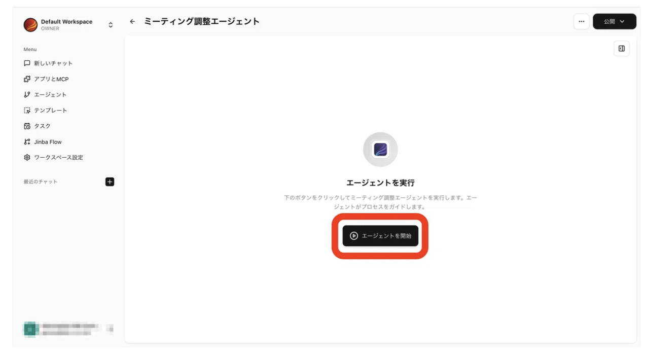 続いてJinba Appにこのフローを導入していきます。unknown nodeJinba Appとはフローをエージェント化してわかりやすく扱ったり、他の人にもリンクだけでエージェントを共有できるアプリです。unknown node(注意: 共有した際はフローで認証したメールアドレスのカレンダーが参照されます。)