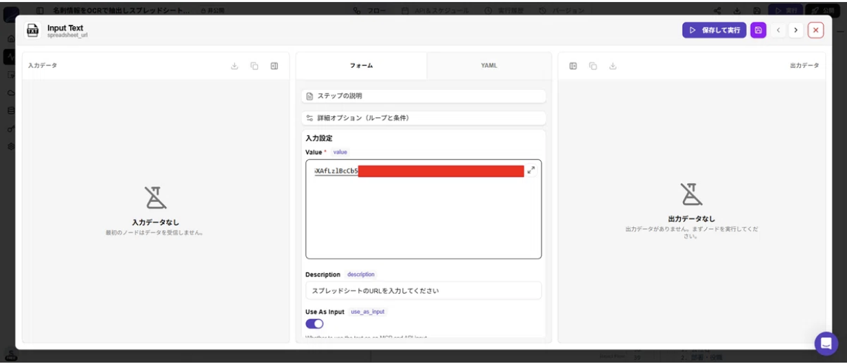 詳細設定は各モジュールをクリックすることで行えます。unknown nodeまず、「 spreadsheet_url 」のモジュールをクリックして転記先となるスプレッドシートのリンクを指定します。