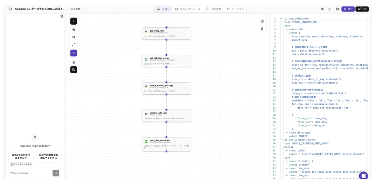 【Jinba Flow】Googleカレンダーの予定をLINEに送信する