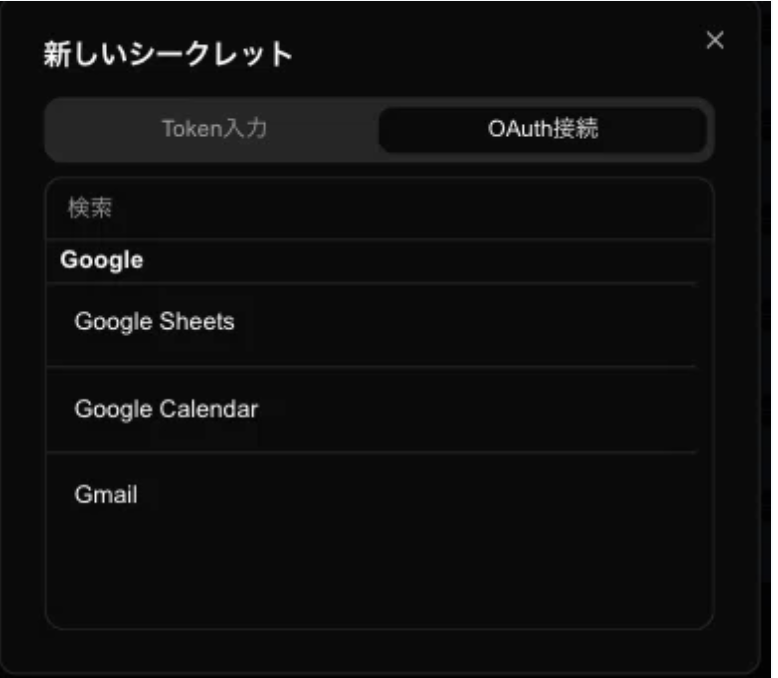 ワークフローの生成時・後に行うことも可能ですが、事前準備として、各ツールとの連携を行なっておくことをお勧めいたします。unknown node連携はサイドメニュー>シークレット>新しいシークレットを追加 より追加が可能です。